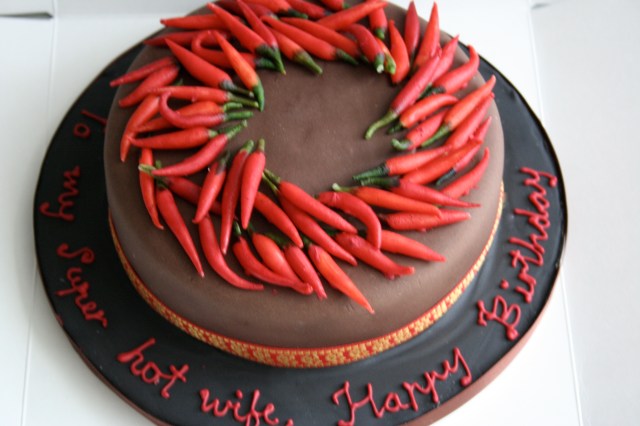 Here’s how the cake looked with the chillies thrown on…