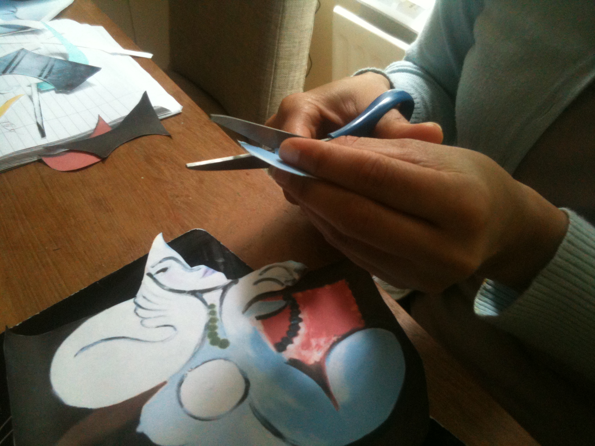 Paper stencils for each part were cut out from a printed picture.