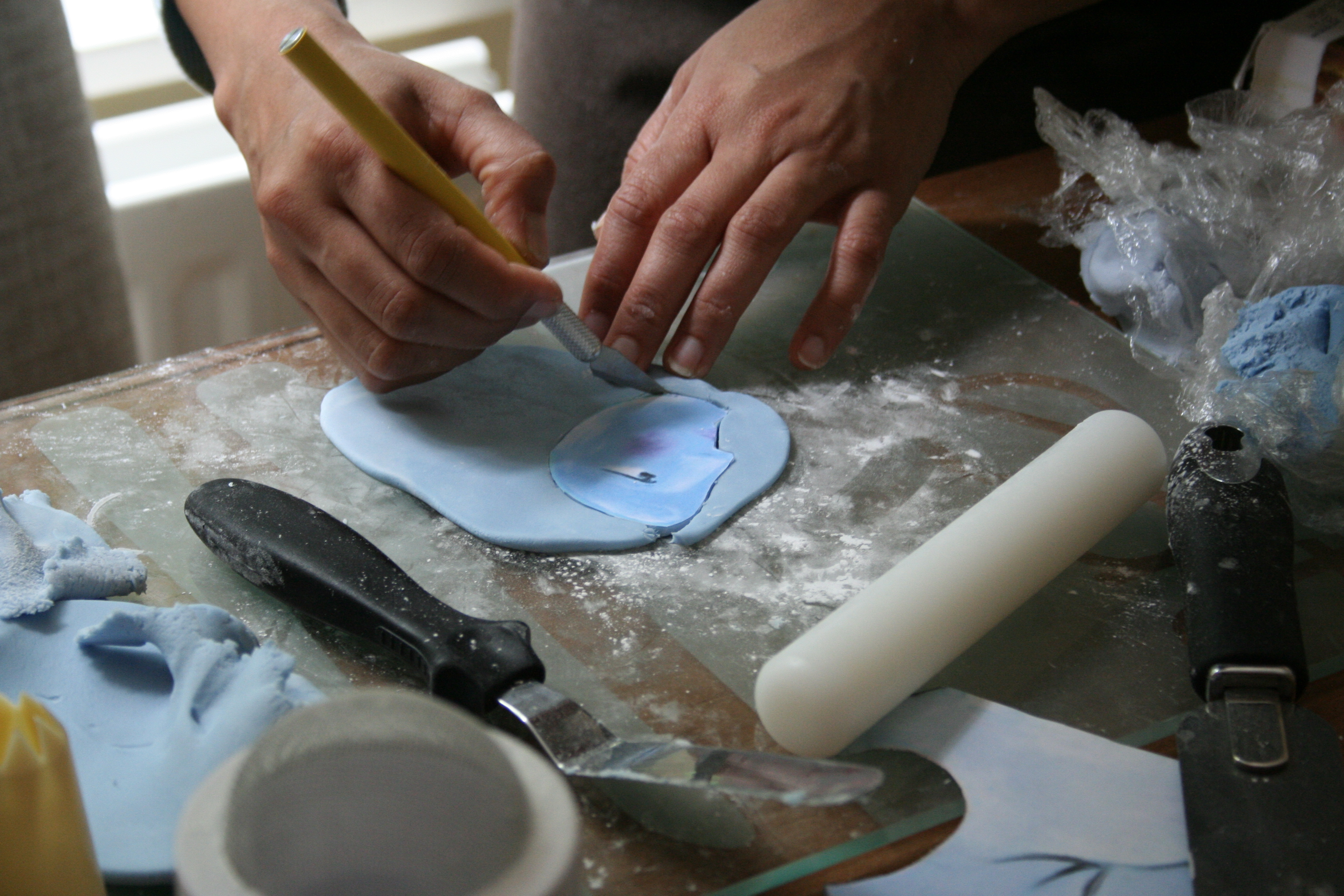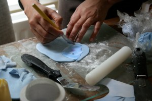 The different colours were then rolled out and cut to the correct shape of the stencils.