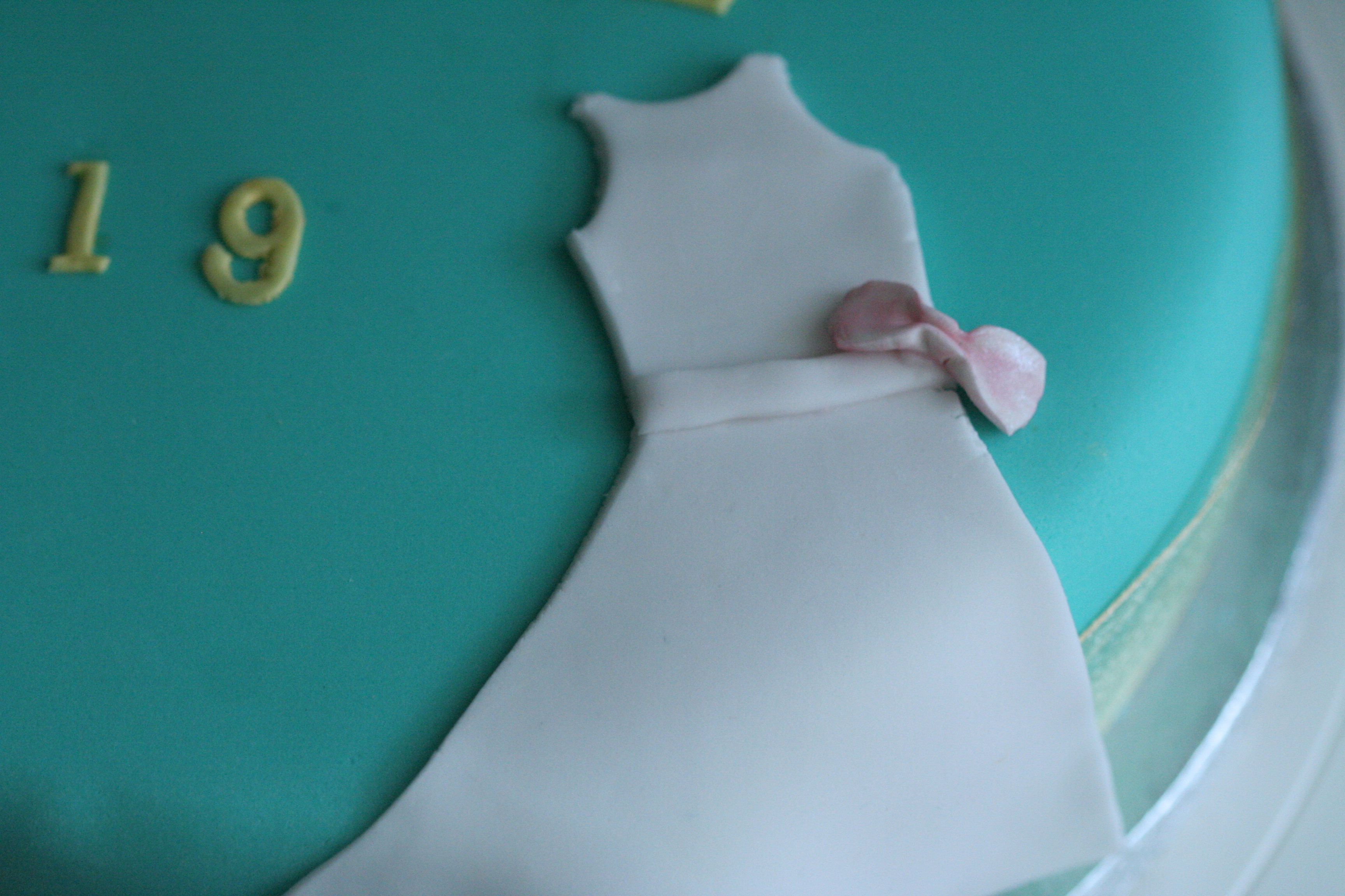 Dress: An elegant dress in shell pink sugarpaste, with an edible bow
